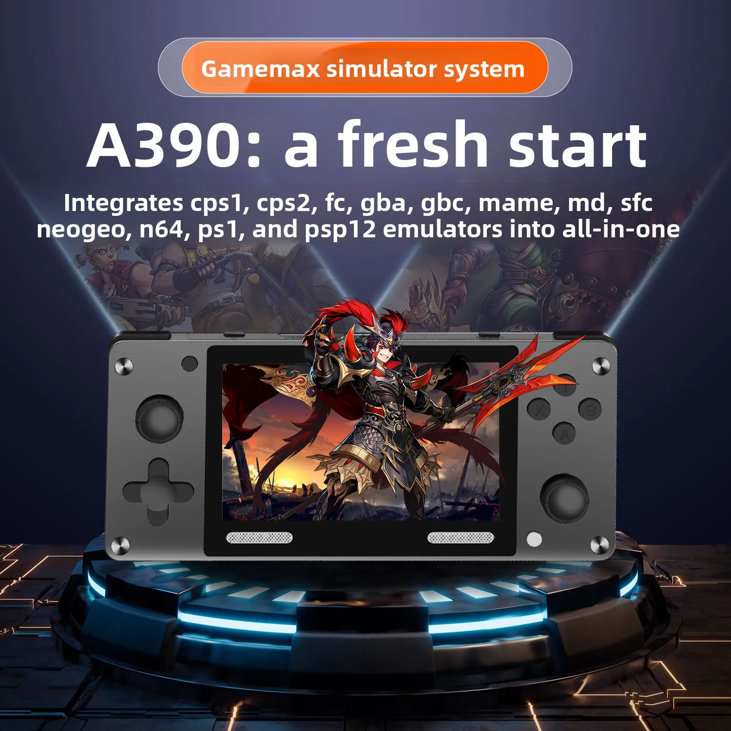 Mini console de jeu vidéo portable A390 Retro Determiner, jeu classique plus tard, écran HD IPS 4,0", plus de 5000 jeux, 12 émulateurs