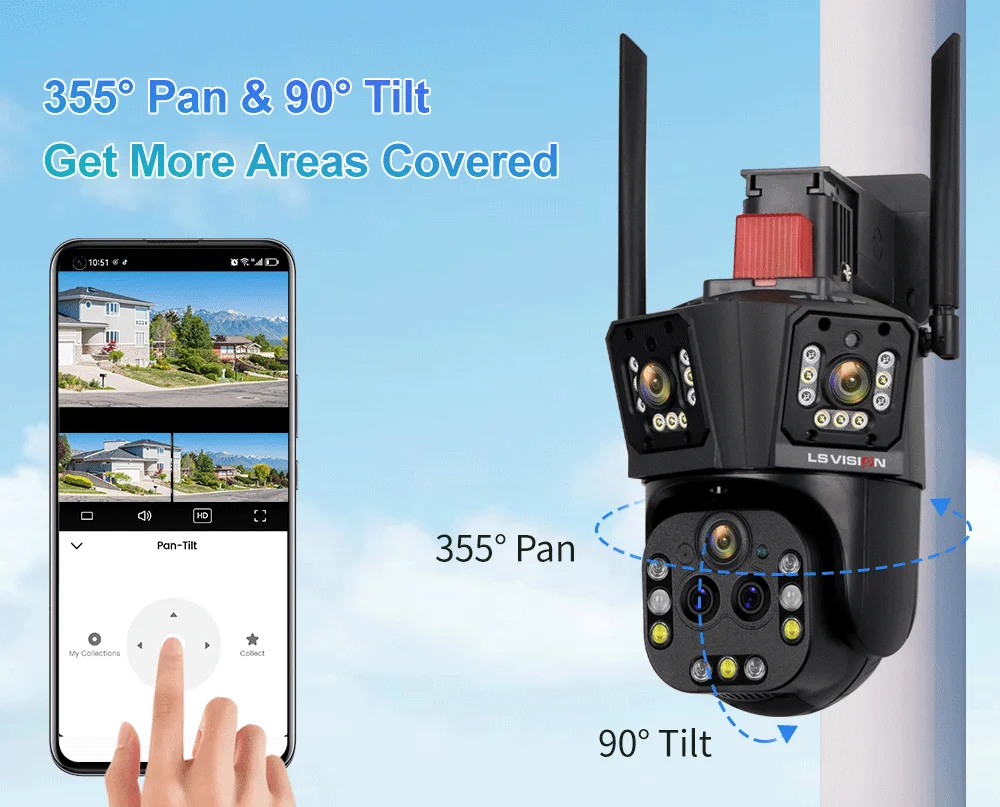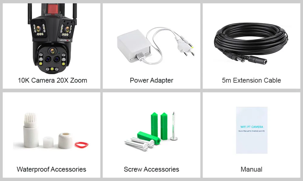 LS cig10 K UHD-Caméra de surveillance extérieure PTZ IP WiFi HD 6K, dispositif de sécurité étanche, avec n'aime optique 20X, cinq objectifs et trois écrans"
