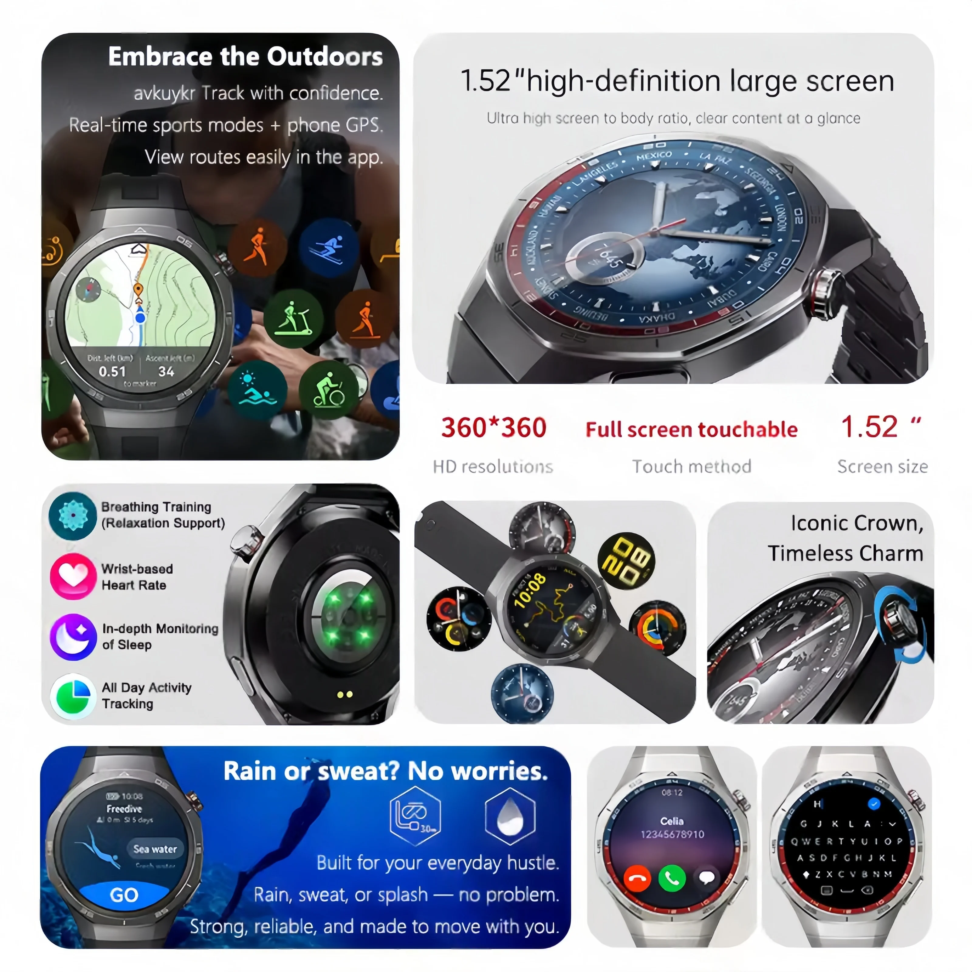 2025 pour HUAWEI montre GT5 Pro GPS Tracke montres intelligentes hommes 1.52 "AMOLED fréquence cardiaque étanche Bluetooth appel homme Bracelet intelligent