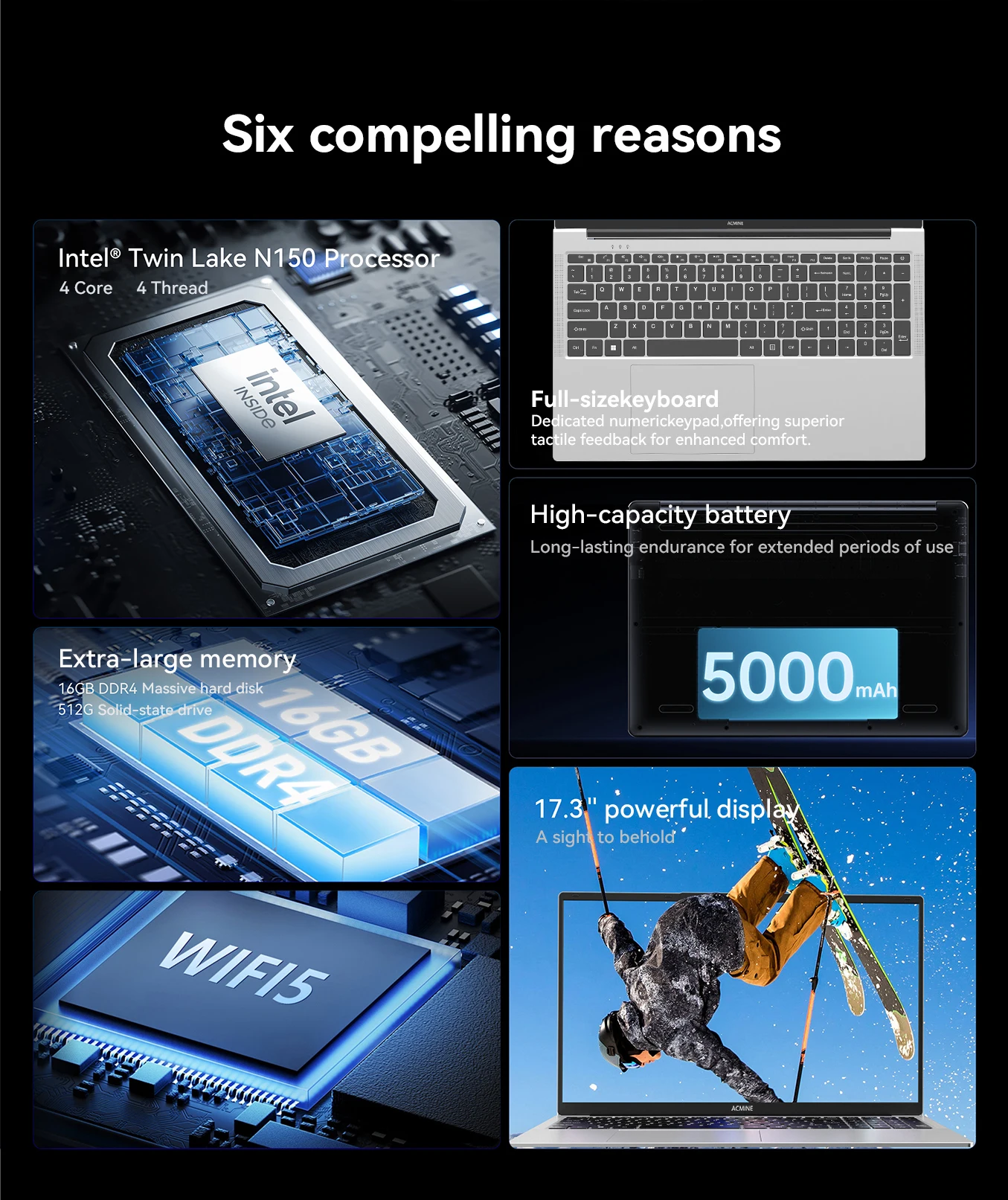 Blossom AX17-N150 ordinateur portable Windows 11 Pro 17.3 ''Intel Atom A3950 12GB/16GB RAM 512GB/1TB SSD 1080P ordinateur portable Ultra mince pour le bureau