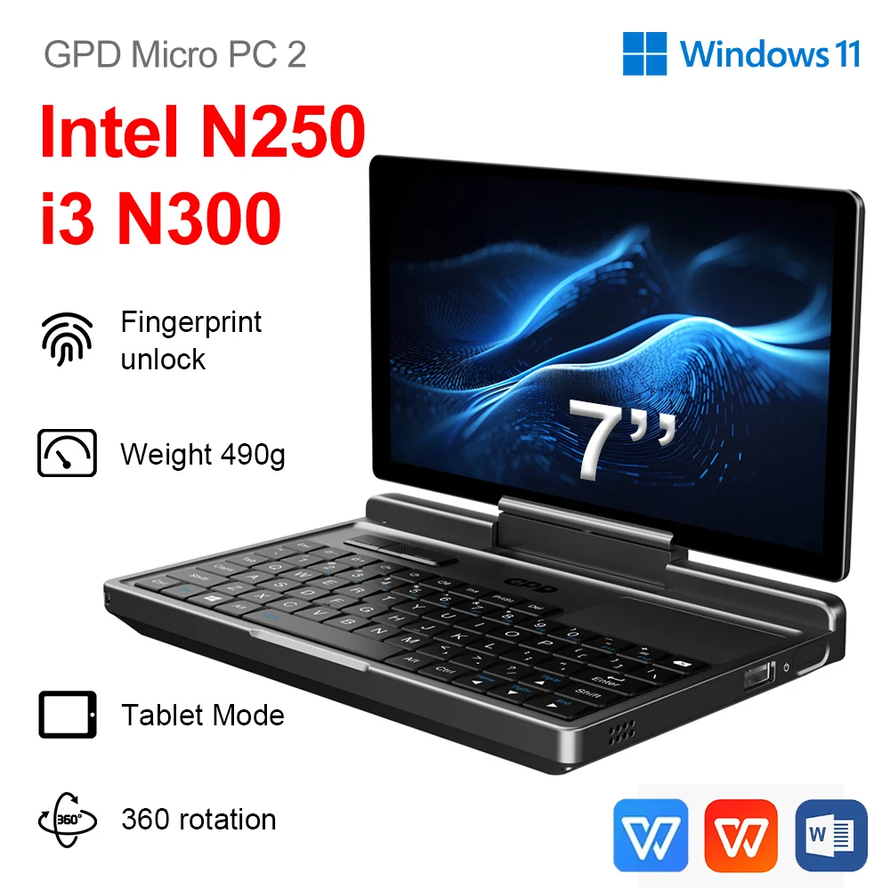 GPD Micro PC 2 Mini ordinateur Portable industriel processeur Intel N250 16GB/512GB M.2 SSD Windows11 60Hz ordinateur Portable ordinateur Portable